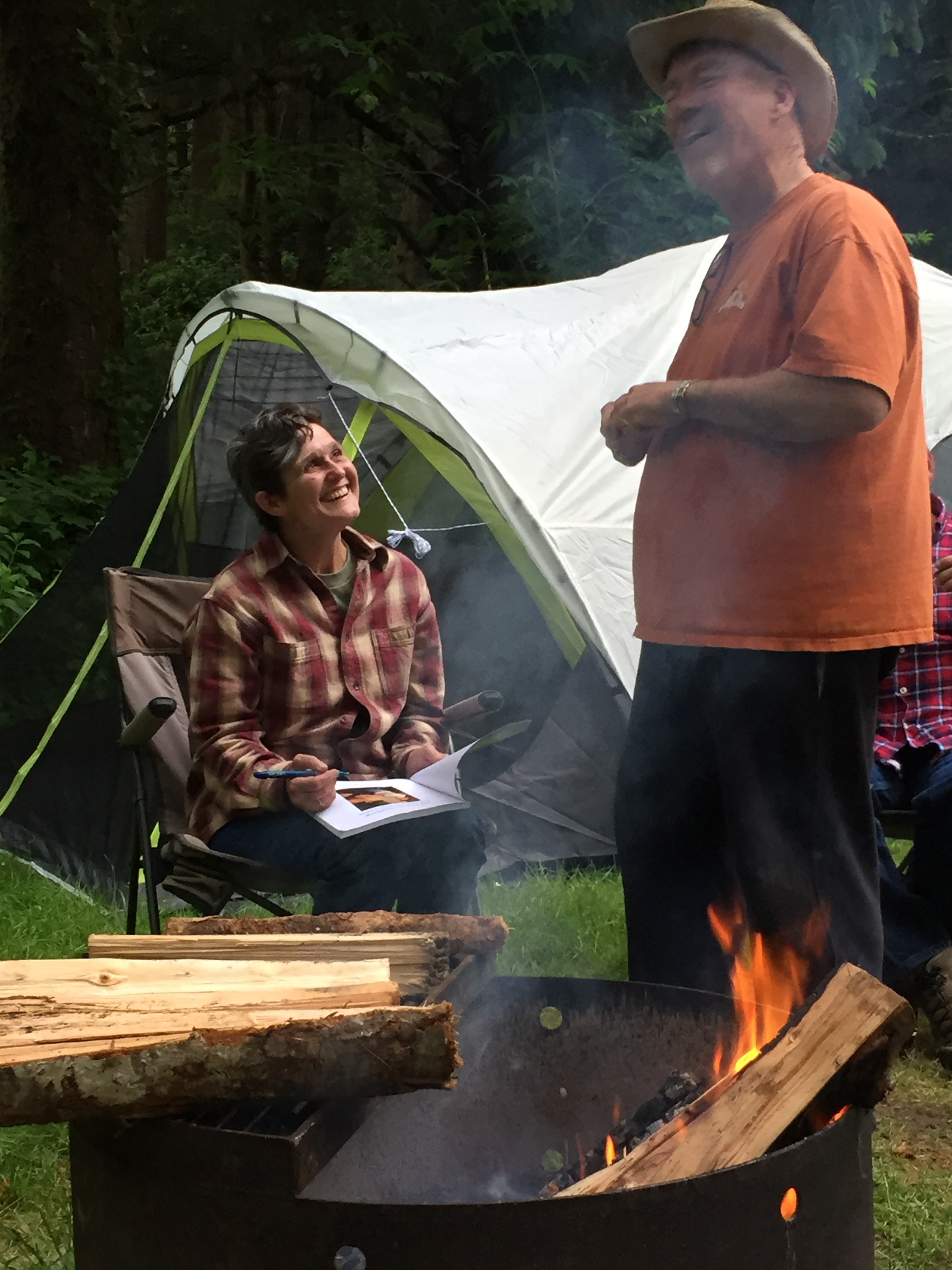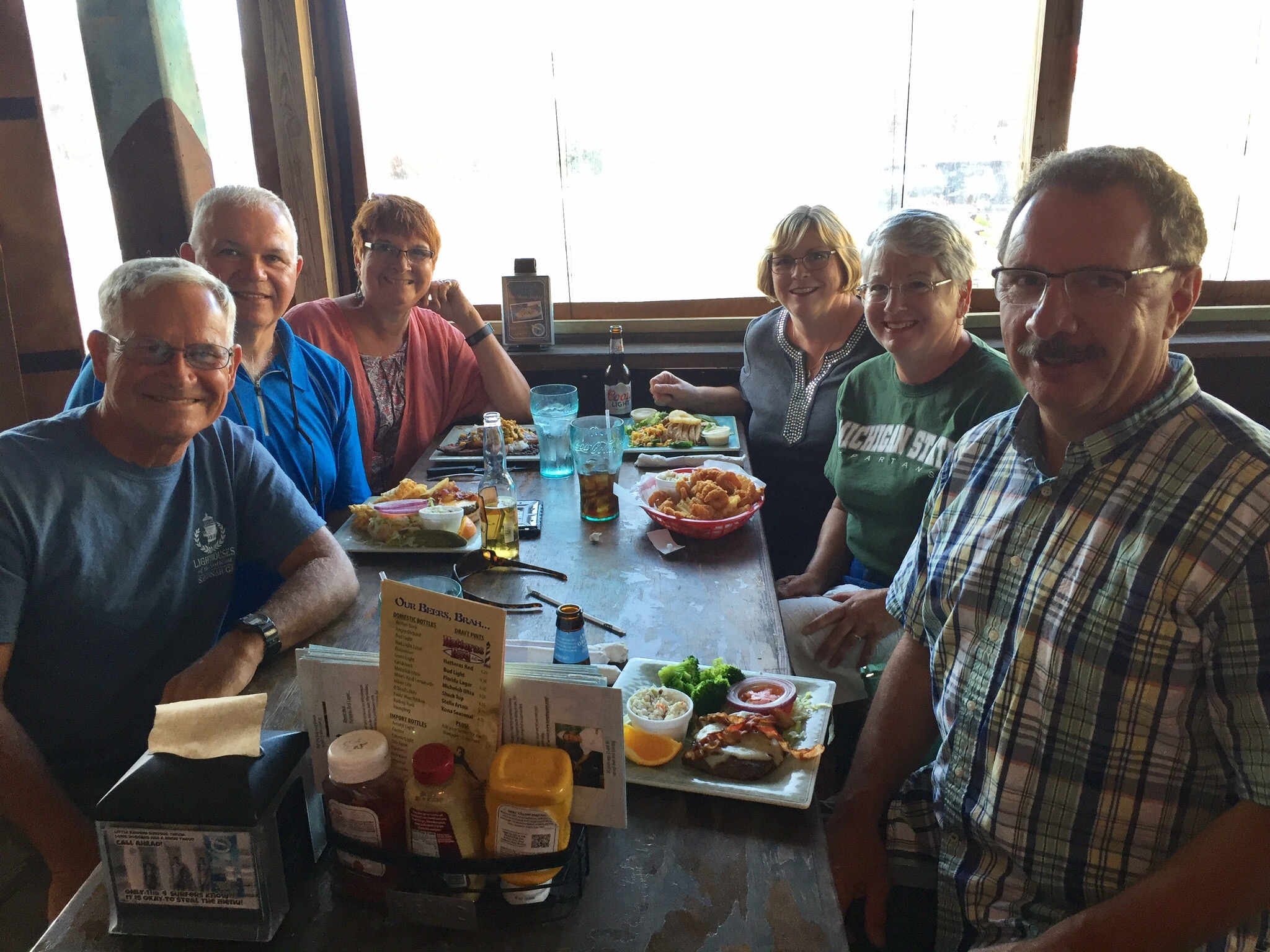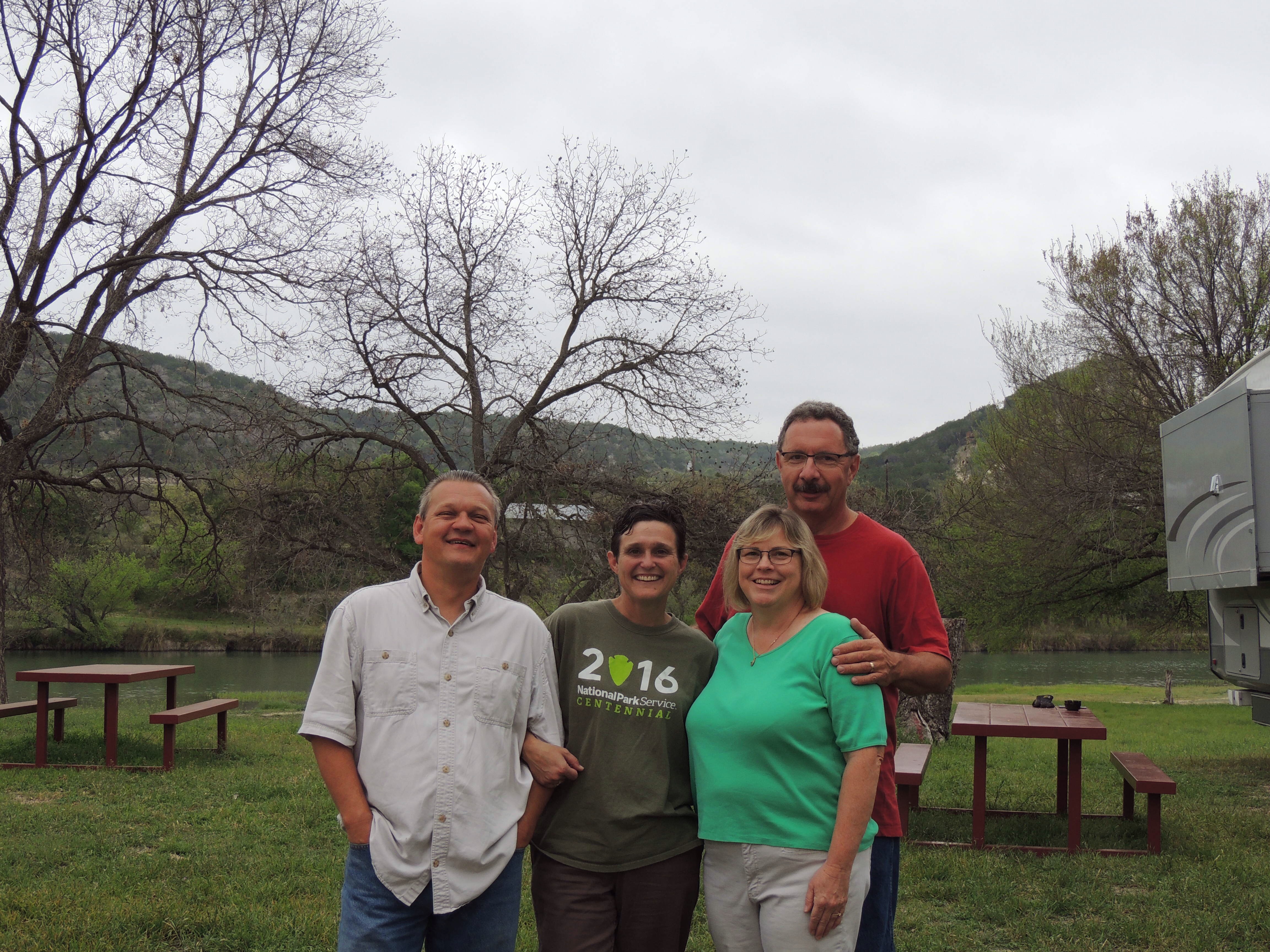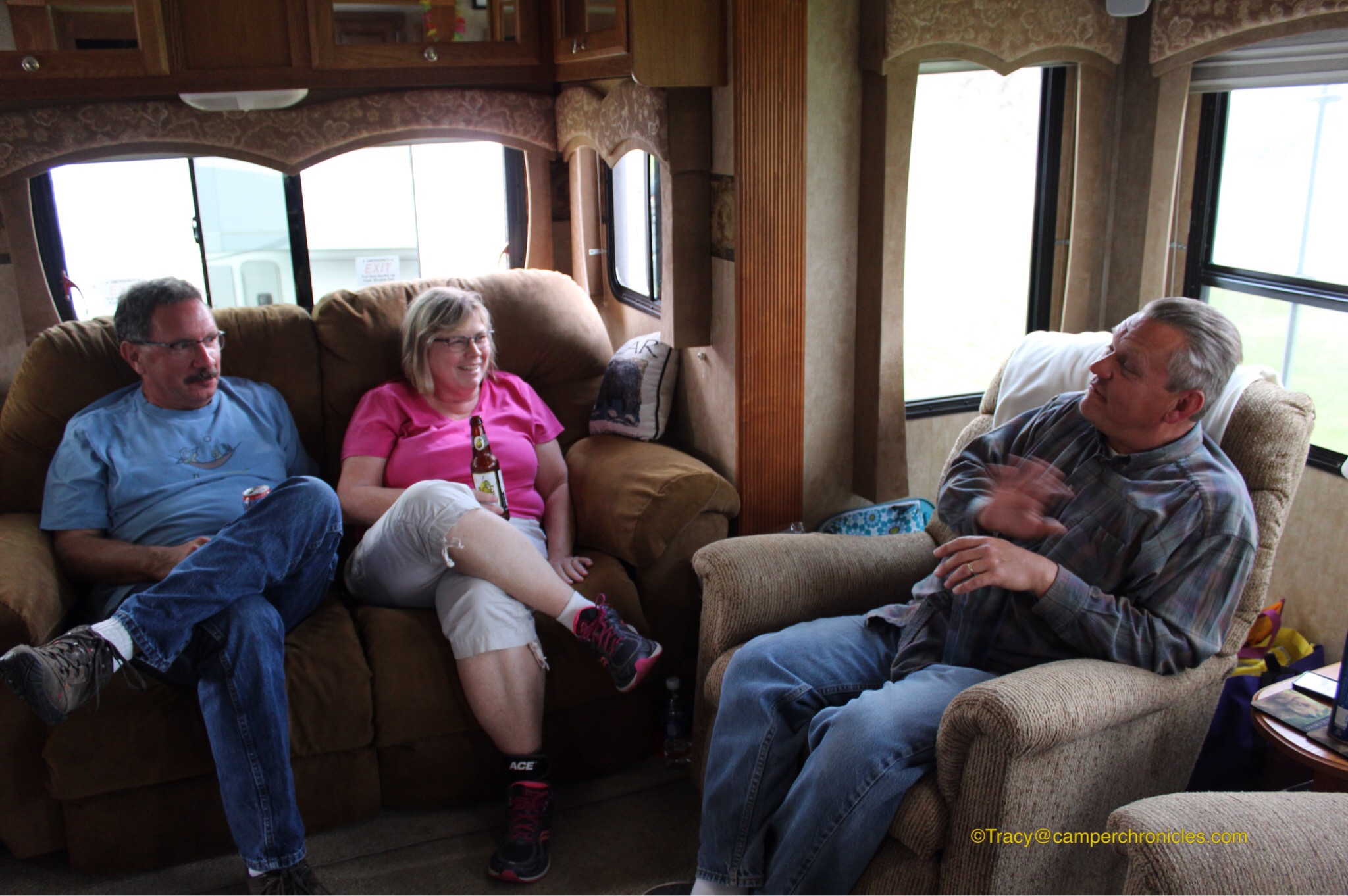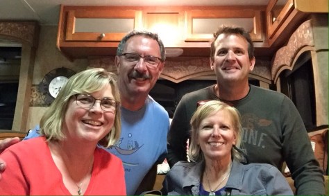 What a treat to get together with these folks! The big news this year is that several couples…including Howard and Linda (RV-Dreams founders and owners in the center of this photo)…have transitioned from full-time to part-time status. Many of us have bought houses or property and are establishing roots. The two of us are still officially full-timers for another three years or so, until our heads hit the pillows in our cabin.